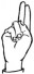 На ћирилици написано СИМОНА ЛУДОШКИ састоји се из 13 слова [?]. Исписано ћириличном једноручном азбуком за глувонеме: